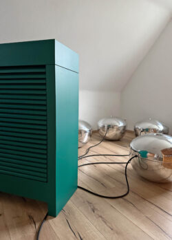 Die Dresdner Konzeptkünstlerin und Bildhauerin Ulrike Mundt hinterfragt mit Witz aktuelle Phänomene gesellschaftlicher Kommunikation. Indem sie Ausdrucksformen des Produktdesigns adaptiert und mit handwerklich hergestellten Formen kombiniert, verknüpft sie künstlerische Diskurse mit der Alltagswelt. In dieser Ausstellung stehen erstmals ihre Klangskulpturen im Fokus, die einen Schwerpunkt ihrer künstlerischen Arbeit darstellen. Bekannt erscheinende skulpturale Formen, werden mit gegenläufigen Sounds wie dem Knurren eines Hundes, Kurzwellengeräuschen oder einer musikalischen Sequenz kombiniert, die unerwartet einsetzen und auf diese Weise eine surreale Raumsituation erzeugen.